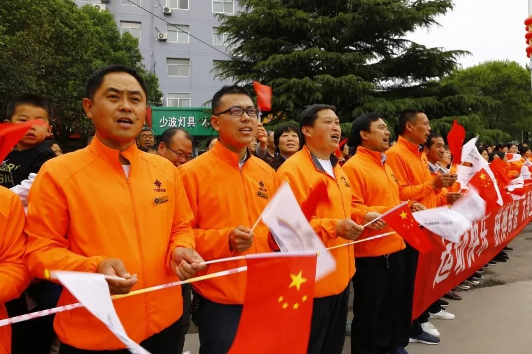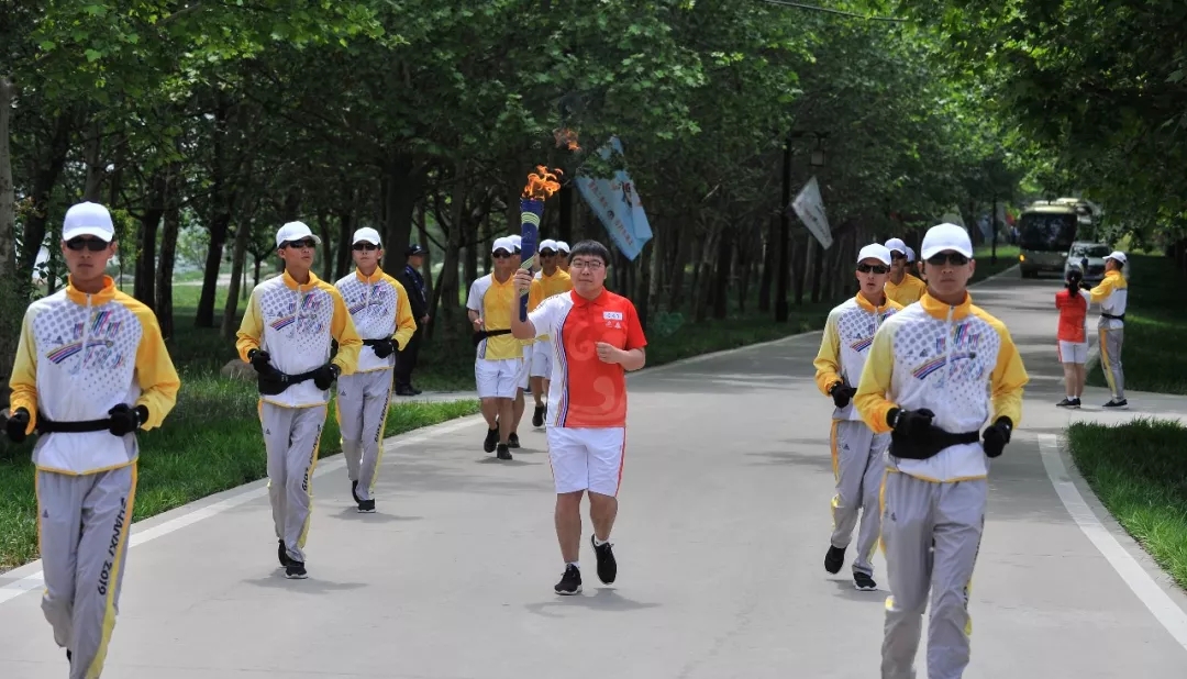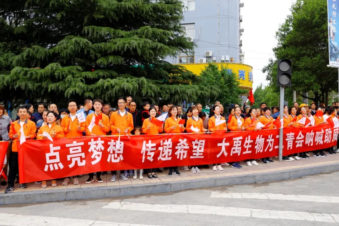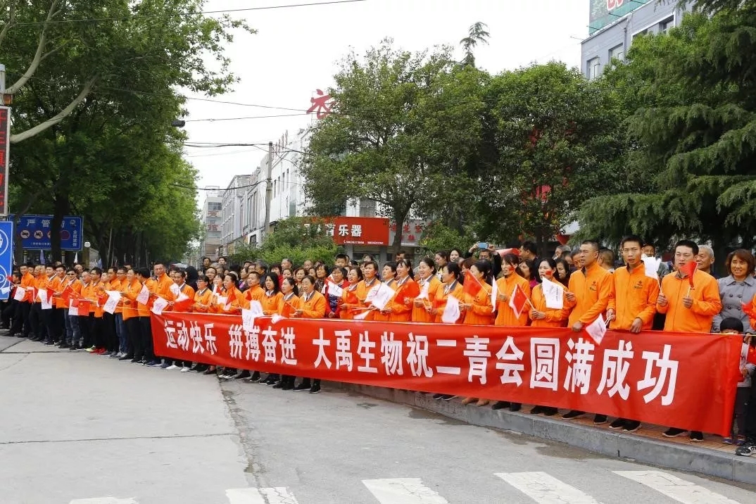 大禹生物職工代表手搖五星紅旗和“二青會(huì)”會(huì)徽“山河”旗幟,為圣火傳遞加油助威。